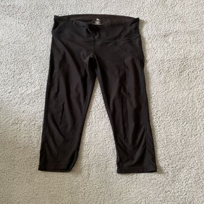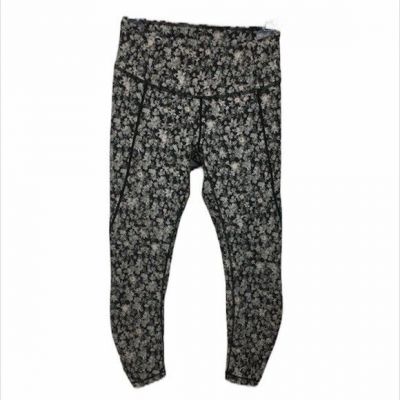 Athleta Black with white geometric lines print, full length leggings, size Med.