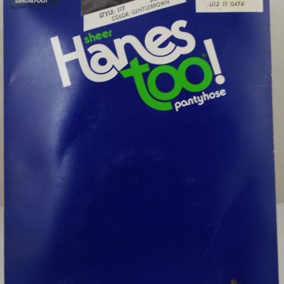 "Hanes Too!" Sheer Pantyhose "GentleBrown " Style 117 Size E-F VTG '88 NOS USA