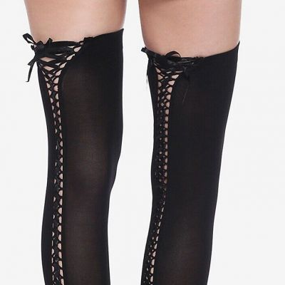 BRAND NEW Wet Look Thigh High Solid Black Stockings Leggings Lingerie