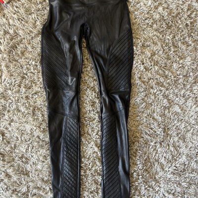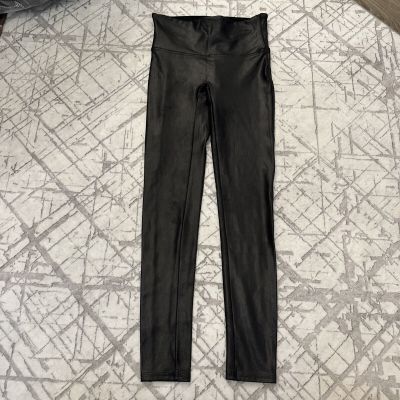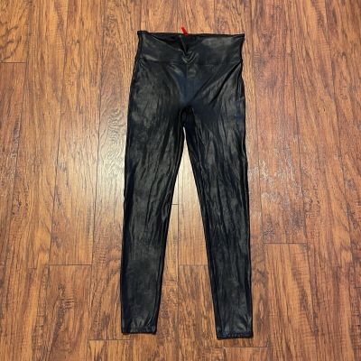 New SPANX Faux Leather Leggings Women’s Size Medium Maroon Red Shapewear Shiny *