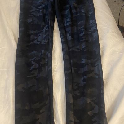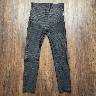 Spanx Leggings Womens Petit Medium Black Camo Athletic Shiny
