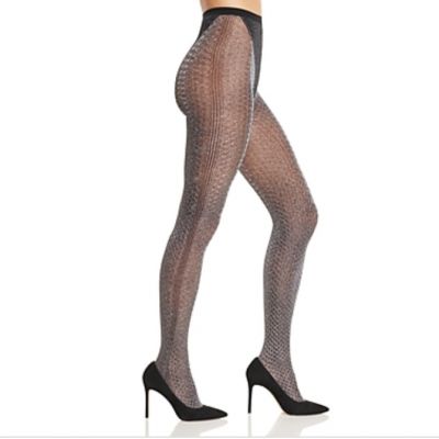NIB Womens Medium Fogal Kristal Diamond Design Pantyhose Tight Black Silver