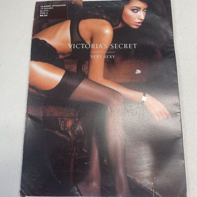 Vintage Victorias Secret Lace Top Thigh High Stockings - Size Small - Jet Black