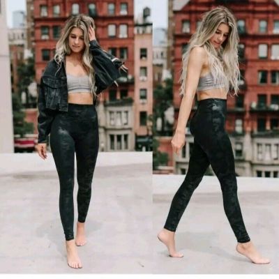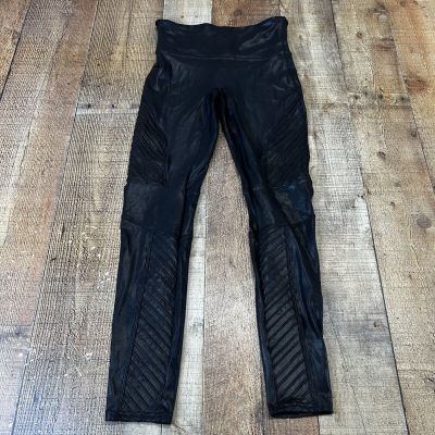 Spanx Women's Faux Leather Moto Leggings Large Black 26" Inseam Style 20136R