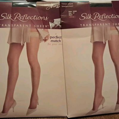 Hanes Silk Reflections Lace Top Thigh High Stockings Pantyhose Jet black Sz AB