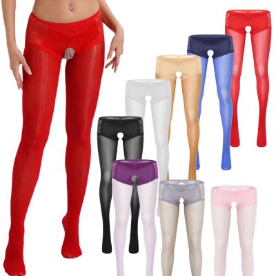 Women's Shiny Sheer Tights Nylon Silky Stockings Hollow Out Stretchy Pantyhose