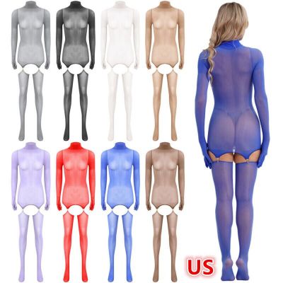 US Womens Dress Bodycon Bodysuit Glossy Nightwear Hold-Ups Lingerie Stage Show