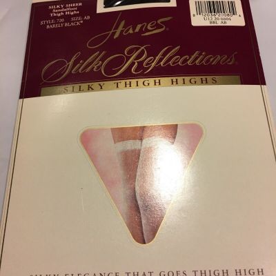 HANES SILK REFLECTIONS SILKY SHEER THIGH HIGH LACE TOP STOCKINGS Sz EF JET Black