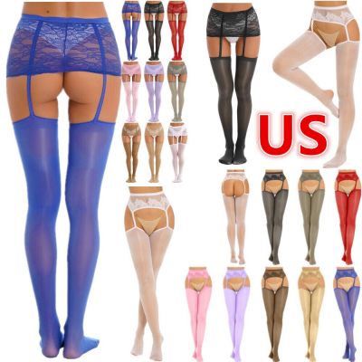 US Womens Seamless Tight Stockings Open Crotch See-Through Floral Lace Pantyhose