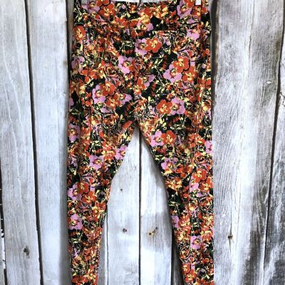 NEW Lularoe OS One Size Leggings Bright Bold Orange with Yellow Flowers Vintage