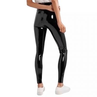 SPANX Black Faux Patent Leather Liquid Gloss Pull On Moto Legging Pants Size L